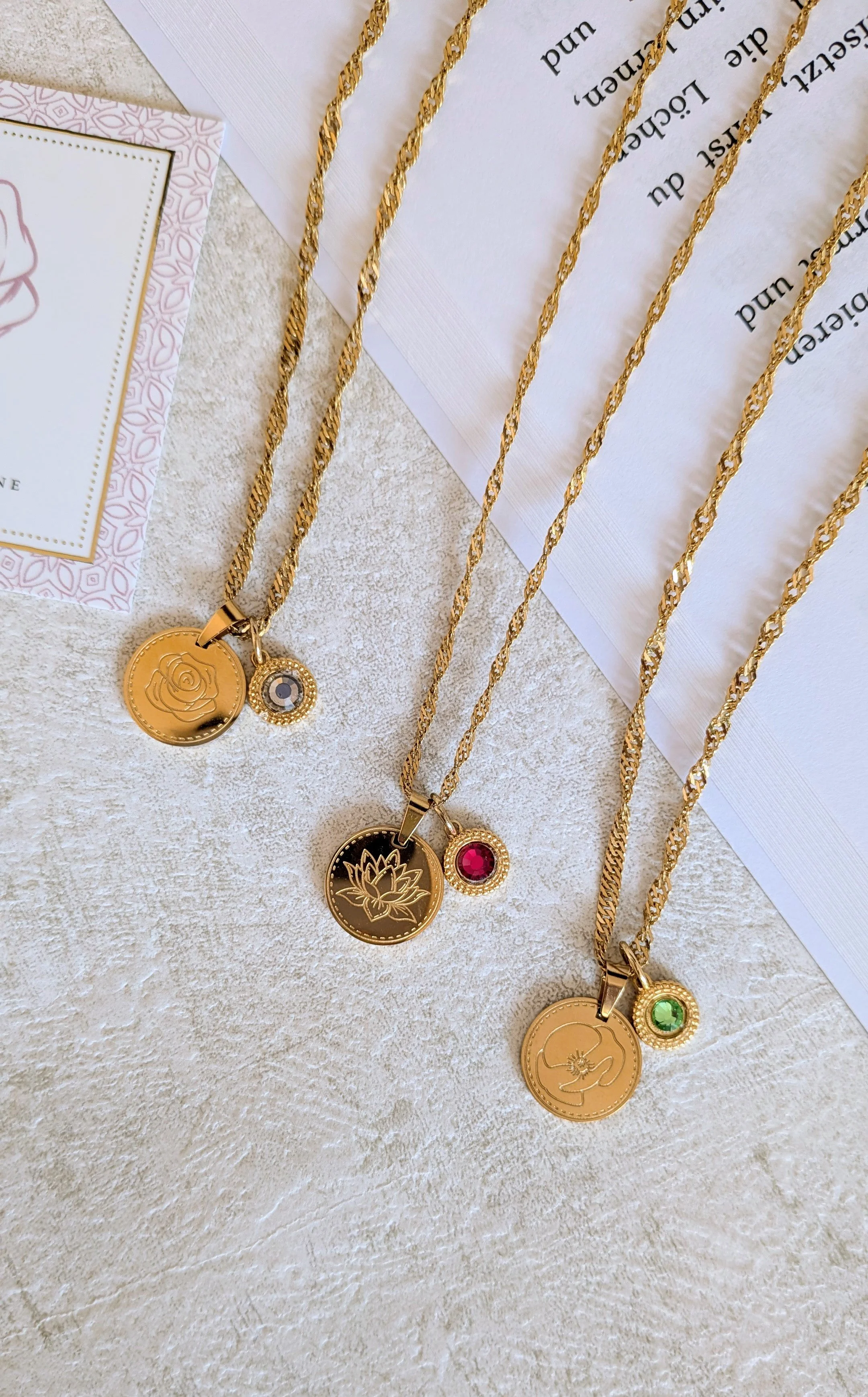 Kette + Anhänger mit Geburtsstein + Anhänger mit Blume Geburtsmonat
