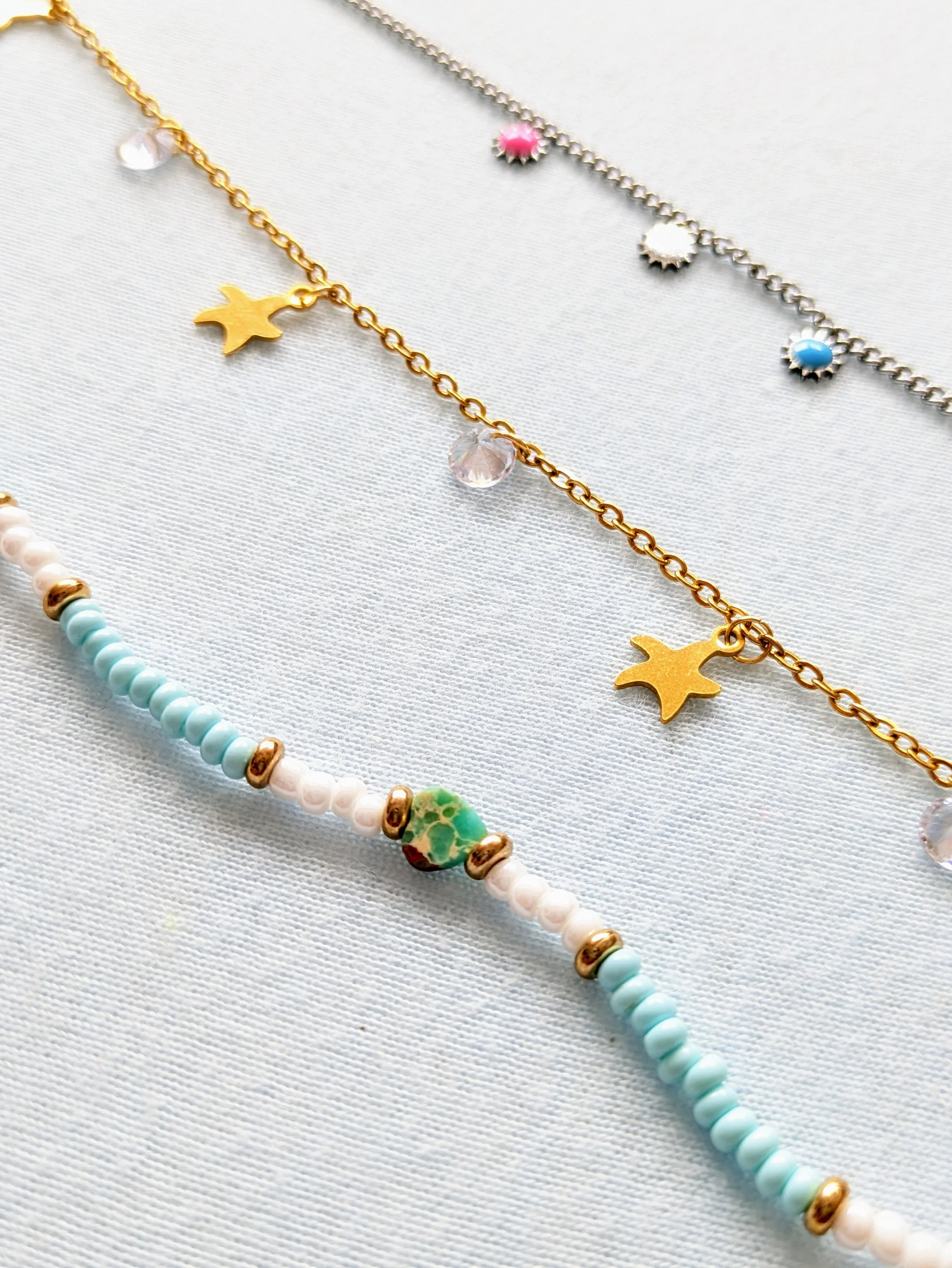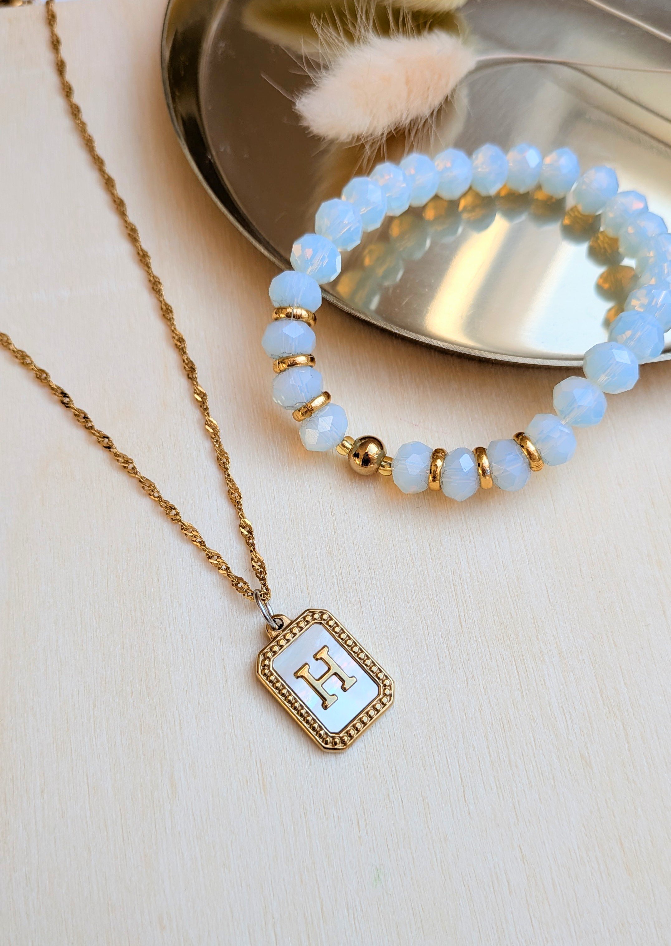 Kette + Anhänger mit Initialen + Armband mit Steinen